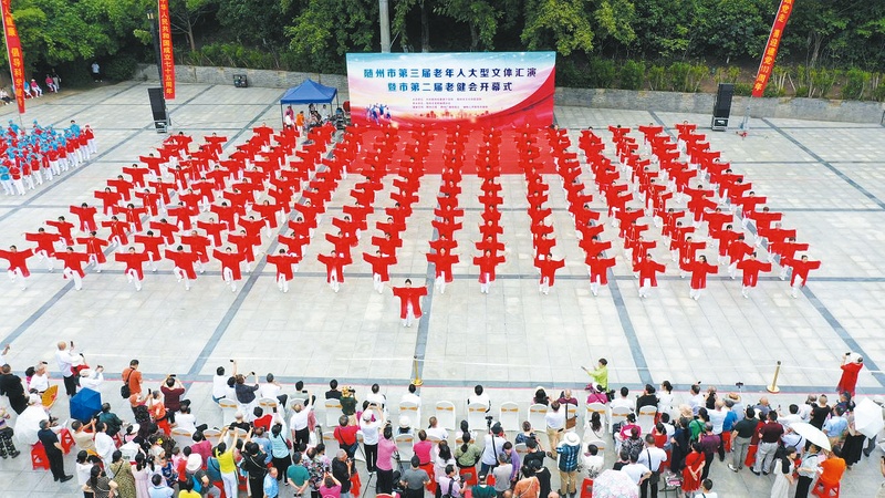 6月30日,市委老干部局、市文化和旅游局在随城神农公园举行随州市第三届老年人文体汇演暨随州市第二届老年人体育健身大会开幕式。市政协副主席程敦怀宣布开幕。(随州日报全媒记者李文军摄)