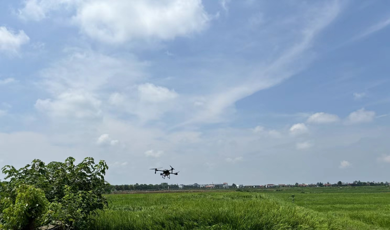 “万亩制种”掀绿浪,稻花香里说丰年。时下,正值杂交水稻制种抽穗扬花的关键时节。在公安县章田寺乡国家级杂交水稻制种基地达仁村,无人机在稻田上空来回掠过,螺旋桨卷起的气流在稻田里划出一道道波浪,助力水稻制种授粉,为水稻制种业的丰产丰收插上了“科技翅膀”。