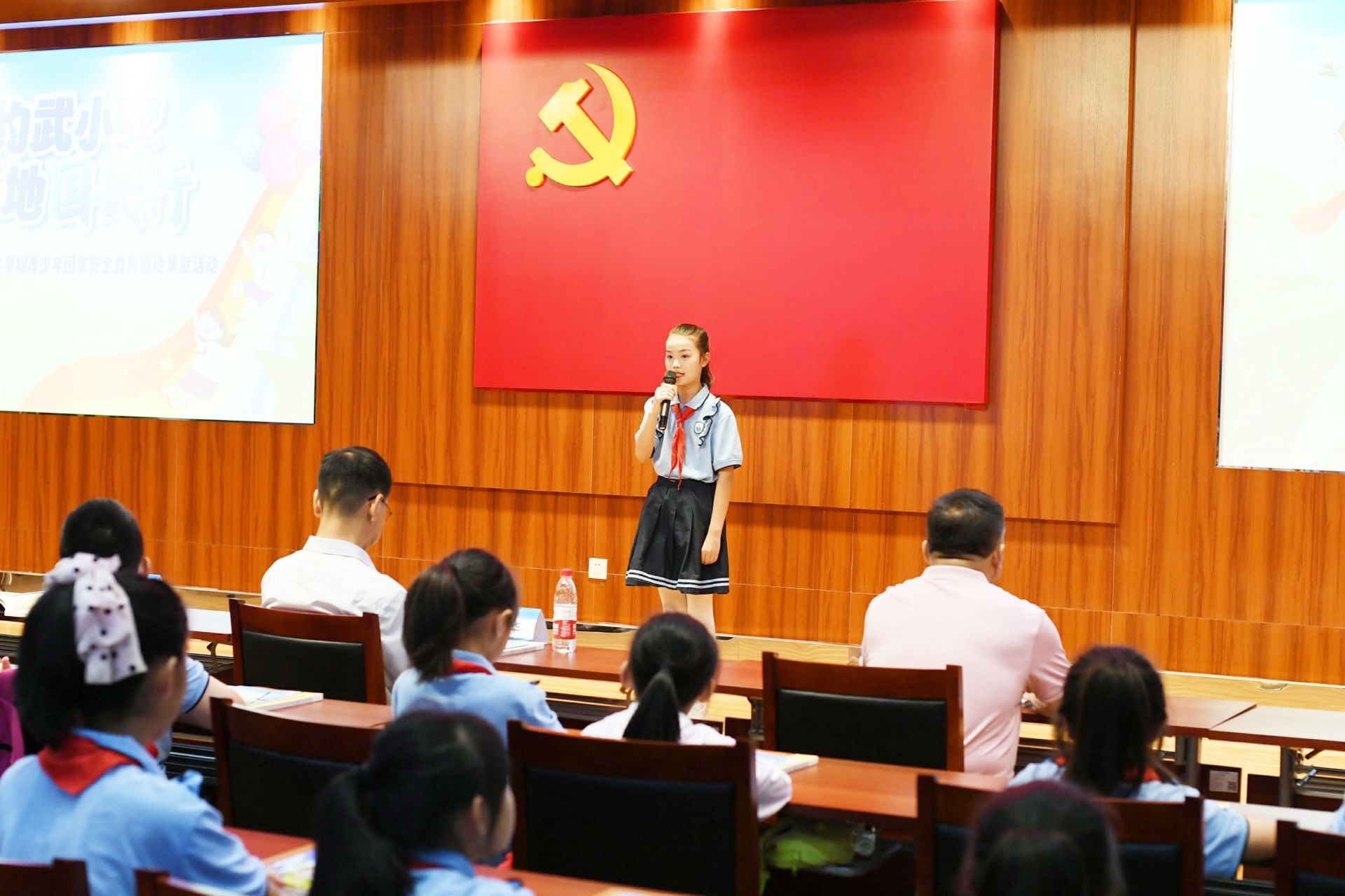 “这个印章真好看,我要继续去其他基地参观,盖不同种类的印章!”启动仪式结束,学生人手一本《寻访手册》,开启了丰富多彩的研学课程之旅。在暑期基地集章活动的第一站,“小安说法”系列漫画创作者蒋勇现场讲述危害国家安全的典型案例,并现场绘画“武小安”赠予小朋友们;武汉革命博物馆的讲解员带领大家探访中共五大会址开幕式会场,重温会议召开的历史背景;参观毛泽东同志旧居……