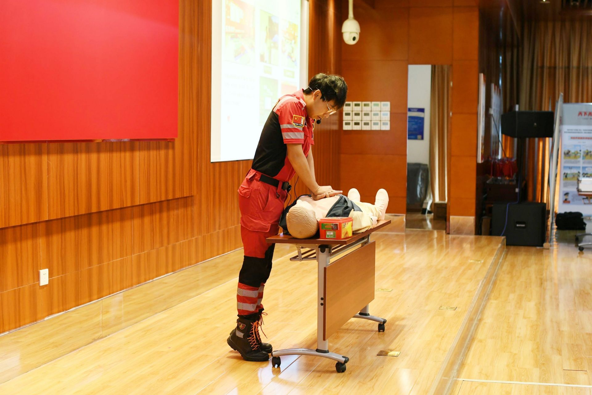 赛孚城国家安全教育基地演示心肺复苏操作流程。 武国安宣提供