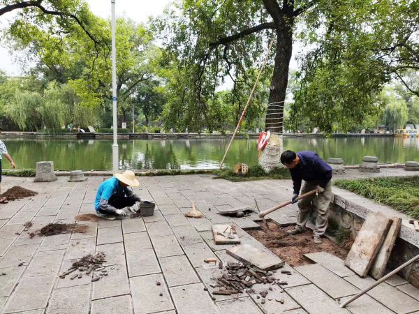 近段时间,市城市公园管理处龙泉公园管理中心安排工人,对文明湖周边步道部分存在安全隐患的石板予以修缮。