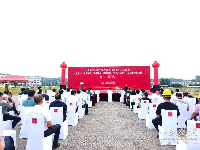 荆楚网(湖北日报网)讯(通讯员 易荣波、李怡、刘阳、江军勇、张东)7月6日,大悟县分别在城关镇精密智造产业园、县开发区南区同时举行2024年三季度重大项目集中开工仪式。莫尔电气、平林科技、岽昇冶金辅料等7个投资过亿元的项目集中开工,项目总投资9.7亿元。