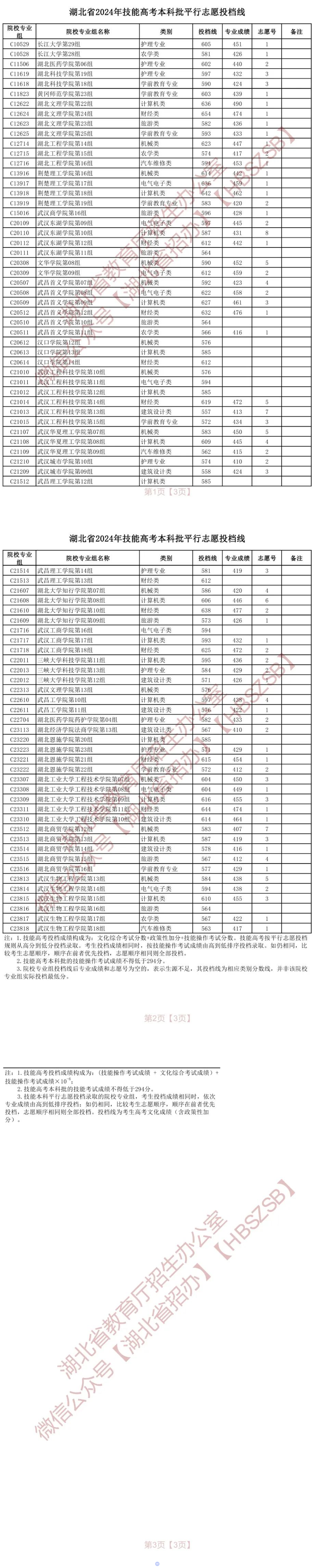 湖北省2024年本科普通批录取院校(首选历史)平行志愿投档线(扫码查看)