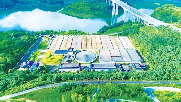 7月15日,记者航拍的中华水园湿地公园。从空中俯瞰,蜿蜒河流、公路桥梁、苍翠密林与湿地公园相互映衬,美丽如画。该湿地公园是中华水园5个景观节点之一,利用污水处理厂尾水处理场地建造而成,污水处理厂达标的尾水在这里经再次净化提质后排放。近年来,郧阳区综合治理境内汉江流域,高标准打好“蓝天、碧水、净土”保卫战,塑造“河畅、水清、岸绿”美景。