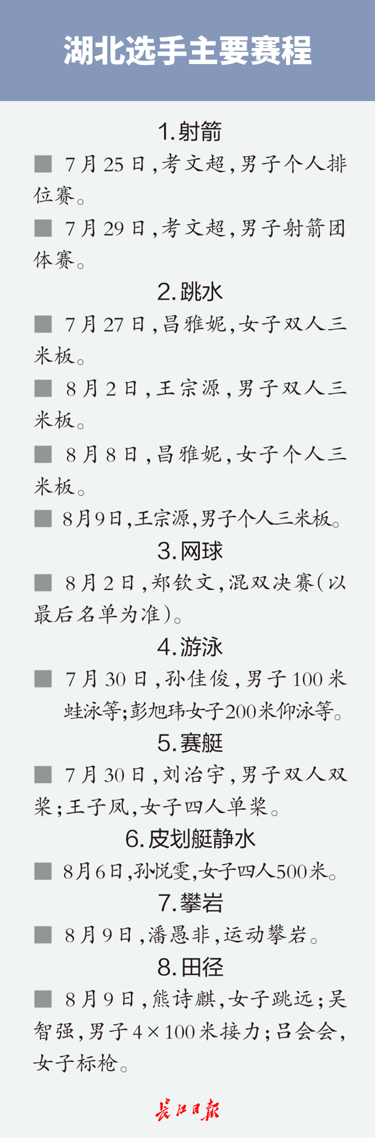 根据奥运会赛程,在考文超之后,第二位出战巴黎奥运会的湖北选手是跳水项目的昌雅妮。7月27日,她将与队友陈艺文搭档出战女子双人三米板决赛。以两人的实力,中国代表团拿下这块金牌的希望较大。