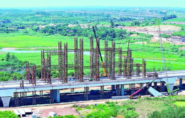 日前,尉迟恭路跨车桥水库大桥项目正在安装景观桥钢结构。据悉,该桥桥面结构已完成,同步在进行人行道护栏安装,计划8月底全部完工验收。尉迟恭路是荆门西交通基础设施补短板项目重点工程,全线建成后将成为连接漳河新区和荆门高新区的主要通道,为人们前往荆门西站提供交通便利。(记者 张彩云 摄)