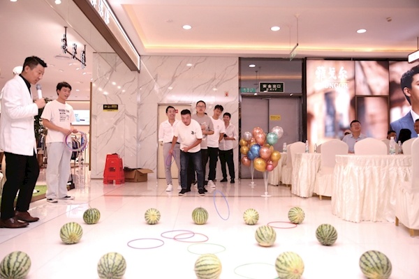 接下来是“破冰”小游戏,一个个充满欢乐的互动环节拉近了男女嘉宾的距离。游戏《拔河喂西瓜》:女孩原地投喂西瓜,男孩通过拔河的形式吃到西瓜;游戏《蒙眼吃瓜》:女孩负责送,男孩负责吃,送的队友原地转三圈后沿直线把西瓜送到吃的队友那边,并帮助队友吃完,用时最短的为胜利者;游戏《西瓜套圈》:男女嘉宾站在一定距离外,尝试用圈套中摆放好的西瓜,套中即可带走。游戏《好重的瓜》:参赛人员对西瓜进行预估重量,估重与实际相差最小的即可抱走西瓜。