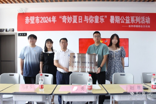 荆楚网(湖北日报网)讯(通讯员 刘天睿 郑明欣 金爽爽)8月1日,赤壁市传来消息,听涛“心启云智”学堂结课仪式暨法商学院(知识产权学院)与赵李桥镇共建大学生实践基地挂牌仪式在赵李桥镇综合文化站正式举行。