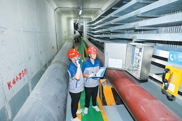 8月1日,中建十堰管廊公司运维人员在地下管廊内巡检。入汛以来,十堰市降雨偏多,该公司利用管廊控制中心监控平台,配合工作人员加强巡查,全力保障地下综合管廊安全平稳运行。据了解,地下综合管廊是城市“大动脉”,集中敷设给水、排水、热力、电力、通信、燃气等管线。我市是全国首批地下综合管廊试点城市,目前累计建设管廊干线22条,总长度53.3公里,服务区域约72平方公里。记者全正摄