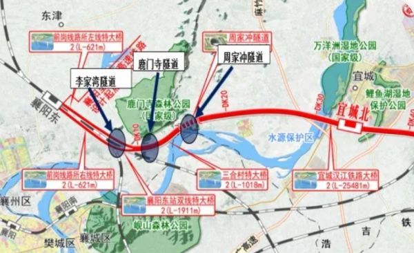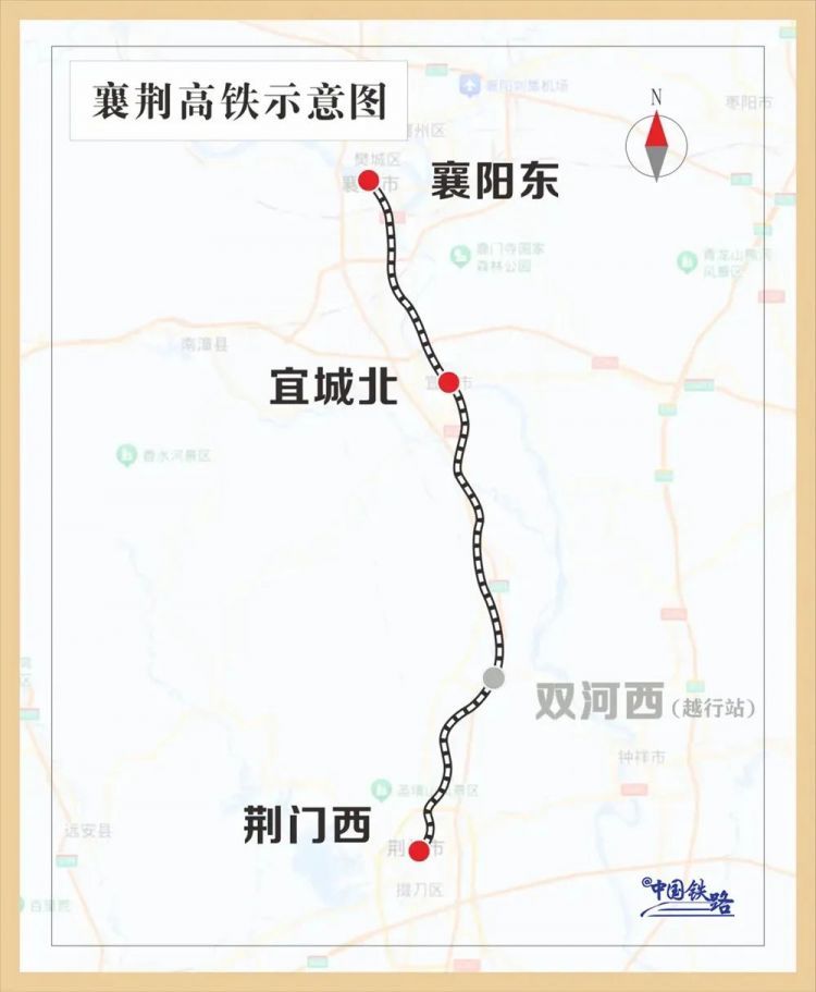 襄荆高铁北起湖北省襄阳市,向南至荆门市。该线路北连在建的郑万铁路,南接在建的荆荆高铁、沿江高铁,是中长期铁路网规划“八纵八横”高速铁路主通道之一“呼南通道”的组成部分。襄荆高铁建成后,将完善湖北中部综合交通体系,对完善我国高速铁路网络布局,推动长江中游城市群与周边城市群协同合作具有重要意义。