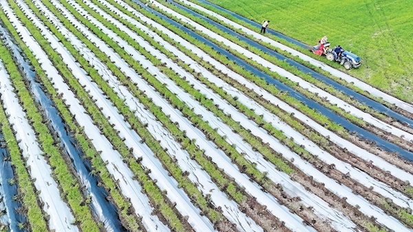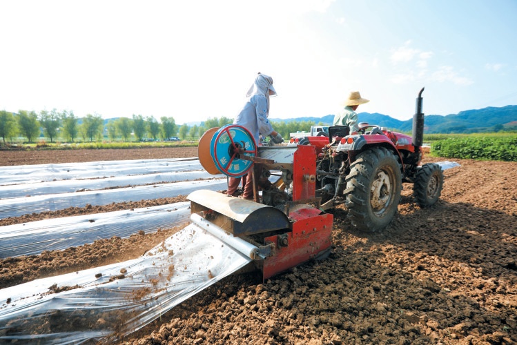 8月3日,在房县军店镇何家村有机蔬菜基地,郝氏有机农业专业合作社农机师傅操作起垄覆膜一体机为贝贝南瓜苗覆膜,田间地头一幅农忙景象。近年来,房县通过“你下订单我生产,农超对接直供货”的方式,按照农户“点单”的蔬菜品种、数量,发展规模效益型“设施园艺菜、订单露地菜、高山绿色菜、地方特色菜”,形成集种植、观光、采摘、销售于一体的产业链,拓宽农民增收渠道,全面推进乡村振兴。特约记者张启龙摄