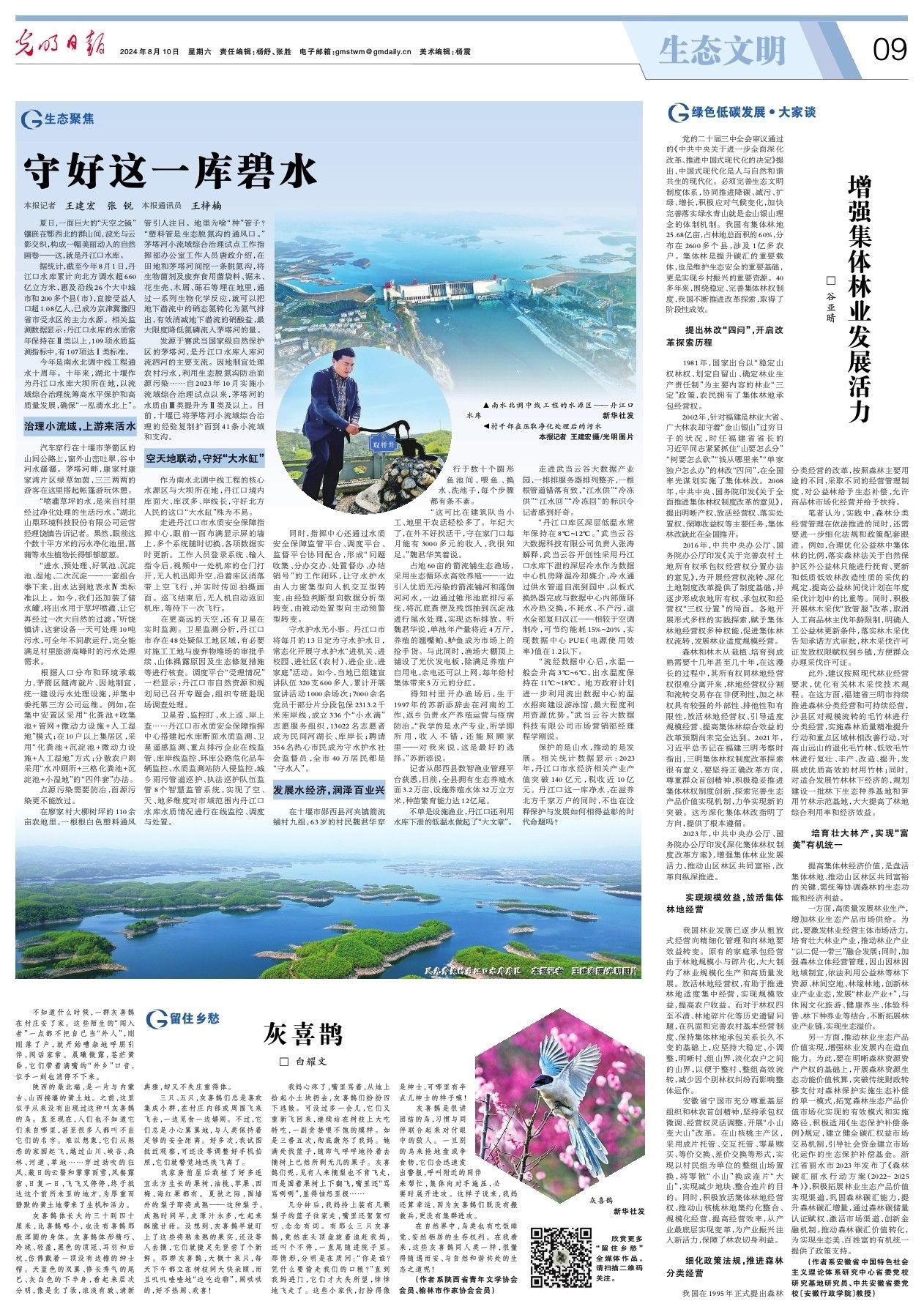 今年是南水北调中线工程通水十周年。十年来,湖北十堰作为丹江口水库大坝所在地,以流域综合治理统筹高水平保护和高质量发展,确保“一泓清水北上”。