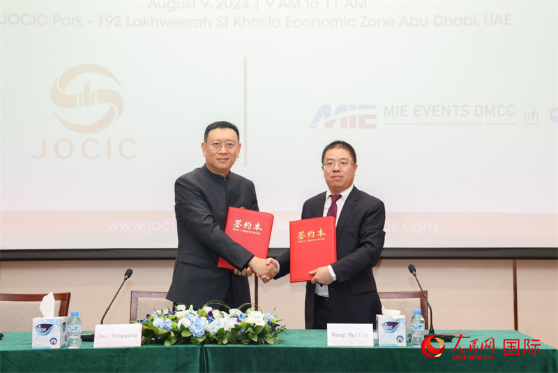 发布会上,中阿(联酋)产能合作示范园与中东国际展览集团签署展会合作协议,将与各方共同努力把展会打造成展现中国工业实力水平的盛会和靓丽名片,为中阿企业搭建交流合作平台,服务两国经贸关系持续深化。