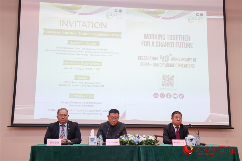 人民网阿布扎比8月9日电 (记者任皓宇)中阿(联酋)产能合作示范园2024年中国工业品展会新闻发布会9日在阿布扎比举行。