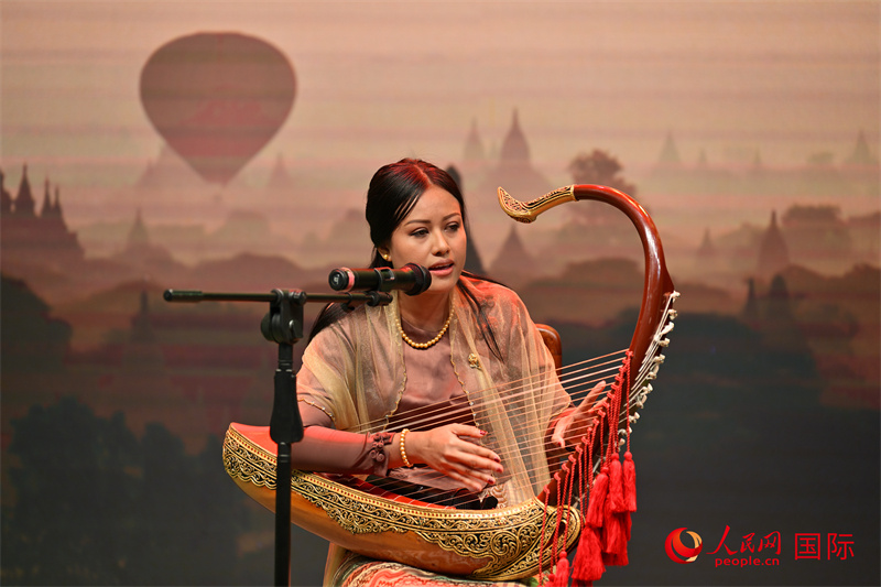 缅甸艺术家在开幕式上表演缅甸传统乐器弯琴。人民网记者 谢佳君摄