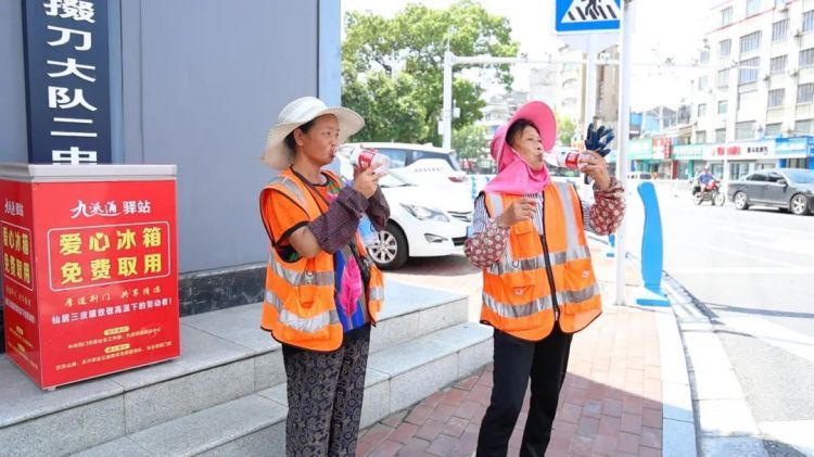 连日来,荆门持续高温,酷暑中,环卫工人、外卖员、快递员等户外工作者依旧坚守岗位,挥汗如雨。“爱心冰箱”的悄然出现,仿佛一座座清凉绿洲,为他们带来了及时的慰藉。