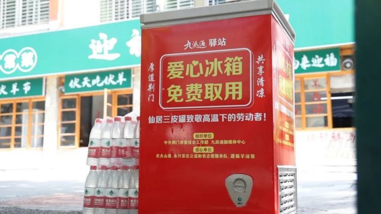据荆门“爱心冰箱”活动联络人刘华平介绍:“爱心商家们启动‘厚道荆门 共享清凉 爱心冰箱’项目后,迅速与农夫山泉荆门经销商湖北东方弘宇商贸有限公司取得联系并获得了他们的支持。同时,也吸引了更多荆门爱心商家的加入,购置了‘爱心冰箱’。”