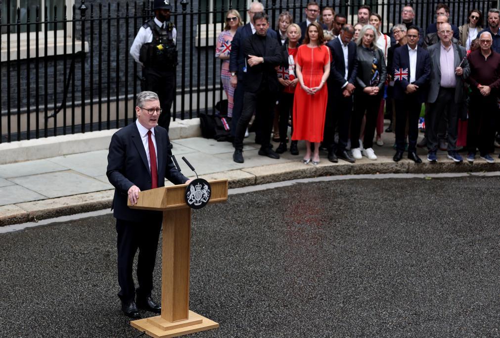 7月5日,基尔·斯塔默在英国伦敦唐宁街10号首相府前发表讲话。新华社记者李颖摄