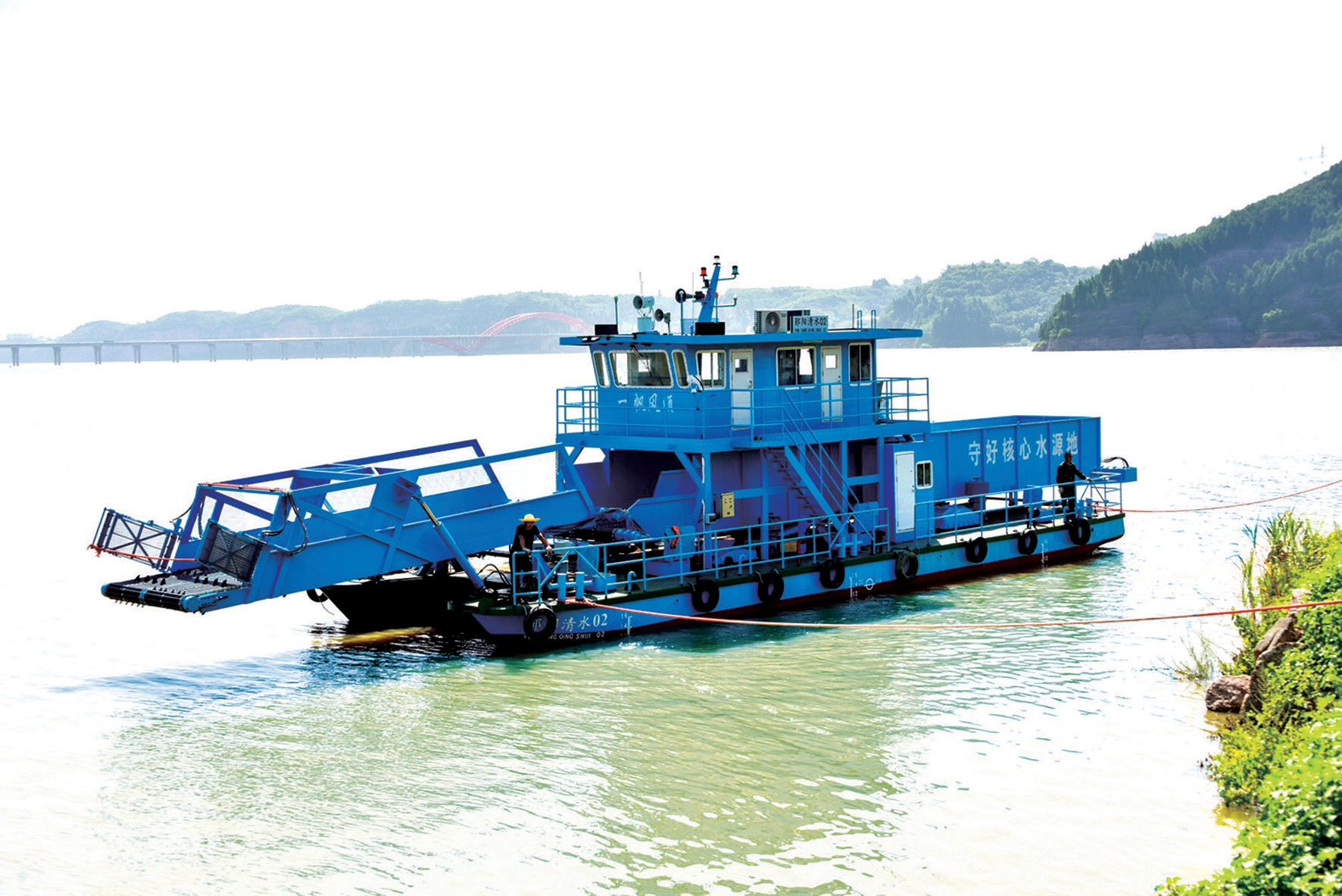 该船为双体结构,船头安装液压制动机械铲臂,专门拾取水面漂浮垃圾,然后传送至船尾处理间进行分装,实现全程机械化清漂。船内设施齐全,配有污水柜、环保型卫生间。此外,安装有船用甚高频无线电话,遇到恶劣天气或紧急情况时,可发出呼救信号并定位遇险地段。据悉,郧阳“清水3号”正加紧建造。待其建成下水后,将配合1号、2号清漂船,全面清理汉江郧阳区段水面漂浮垃圾。