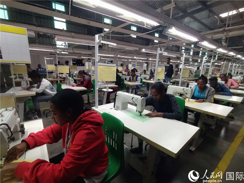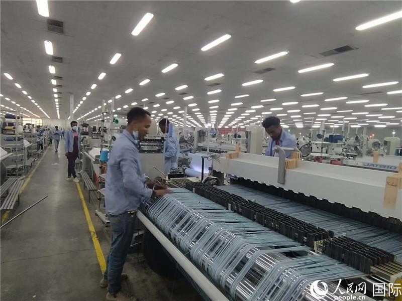 无锡金茂埃塞面料厂车间内,当地工人正在一丝不苟地作业。人民网记者 黄培昭摄