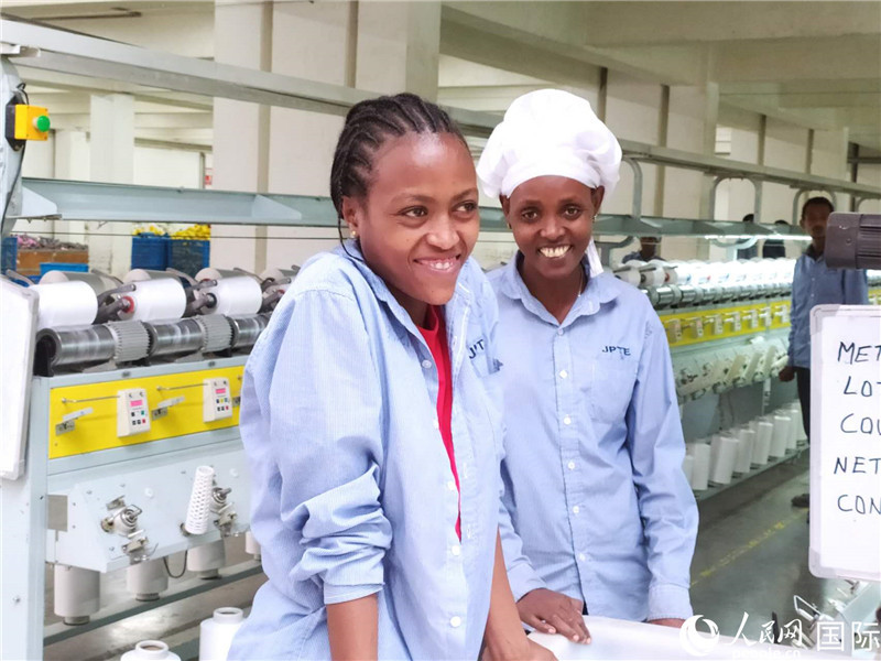 无锡金茂埃塞面料厂车间的当地女工。人民网记者 黄培昭摄