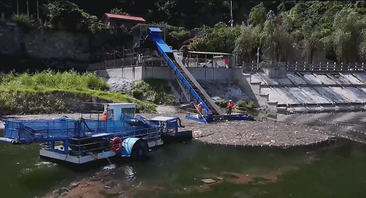 汉江上启用的第一艘自动化清漂船