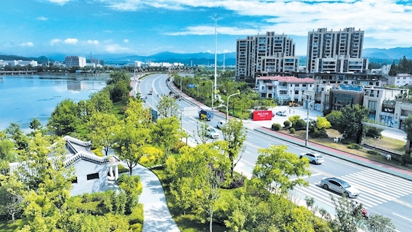 8月12日,记者航拍的房县县城外循环莲花中大道一级路。该路连通县域五大工业园区,外迎东西南北车辆,为分流县城中心通行压力发挥了重要作用。近年来,房县针对县城交通拥堵问题,采取提升县城中心交通内循环功能、扩展城郊外循环公路交通网的方法,疏通城市交通“肠梗阻”,改善出行条件,带动城乡发展。特约记者张启龙摄