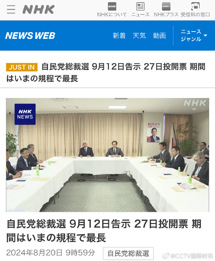 据日本媒体报道,日本执政党自民党总裁选举管理委员会今天(8月20日)举行会议,决定于9月12日发布自民党总裁选举公告,9月27日进行选举投票和计票。