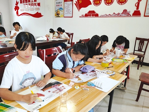 广水市杨寨镇“希望学堂”联动暑假返乡的大学青年志愿者,开展宣讲、手工、绘画等多样特色课程,帮助城镇及附近的孩子们过上一个快乐充实而有意义的暑假。(随州日报通讯员杨倩琳摄)