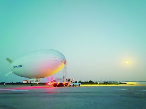 8月20日清晨,“祥云”AS700载人飞艇从荆门漳河机场缓缓升空,开启了首次长距离跨省转场飞行。此次转场飞行,从漳河机场出发,将途经湖南,最终抵达广西桂林,全方位检验飞艇自身性能和机组飞行、地面保障、空域协调等综合能力。(记者 张彩云 通讯员 梅春艳 摄)