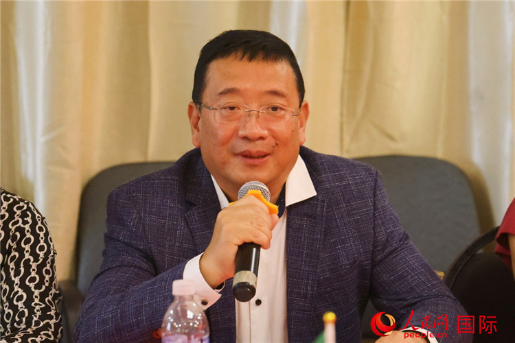 巴西文协主席上官建峰在座谈会上致辞。人民网记者 陈海琪摄