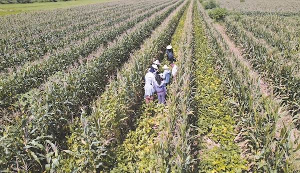 8月20日,曾都区府河镇钰山村大豆玉米带状复合种植核心示范片迎来测产验收,大豆玉米增产效果显著,得到省农技推广中心专家肯定。今年,曾都区推广大豆玉米带状复合种植面积8000亩,效果良好,既能有效利用空间土地、提高产量,又有利于改善土壤条件、提升土壤地力,提高土地复合利用率,将大大提高土地利用率和产出率,实现一田两种,玉米稳产、大豆增收,推动农业生产提质增效。(随州日报全媒记者徐斌摄)
