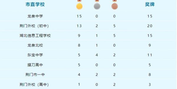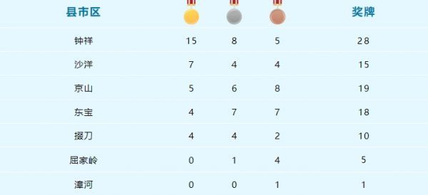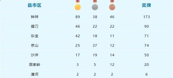 荆门市第九届运动会青少年类奖牌榜