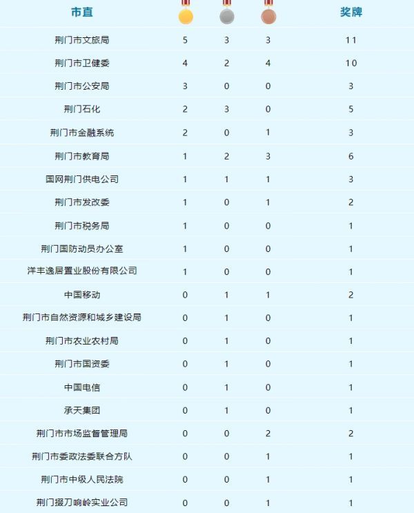 荆门市第九届运动会群体类奖牌榜