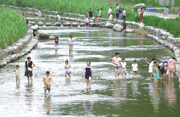 百二河波光粼粼,吸引众多市民消暑。图/记者张启国