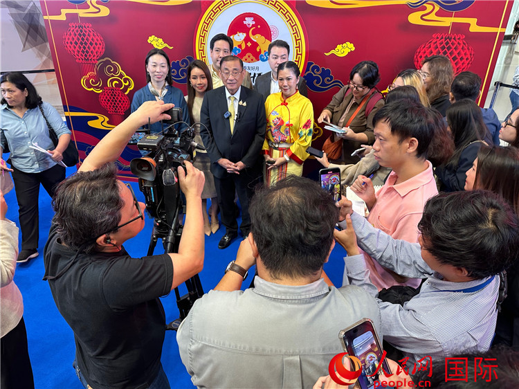 泰国旅游和体育部部长颂萨·蓬帕尼接受媒体采访。人民网记者 简承渊摄