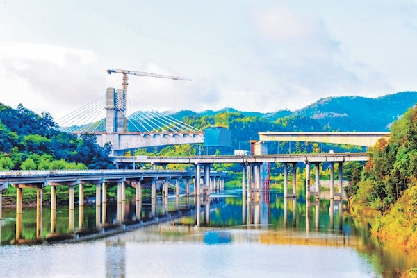 8月21日,在西十高铁柳家河福银立交大桥建设现场,工人正火热施工。该桥位于郧阳区柳陂镇,全长456.75米,跨越209国道、福银高速公路,是西十高铁重点工程之一。西十高铁全长255.76公里,西起陕西西安,向东南穿越秦岭山脉,经商洛,终到湖北十堰,预计将于2026年开通。西十高铁建成通车后,十堰至西安将在1小时内到达,武汉至西安将实现2小时左右到达。特约记者周家山摄