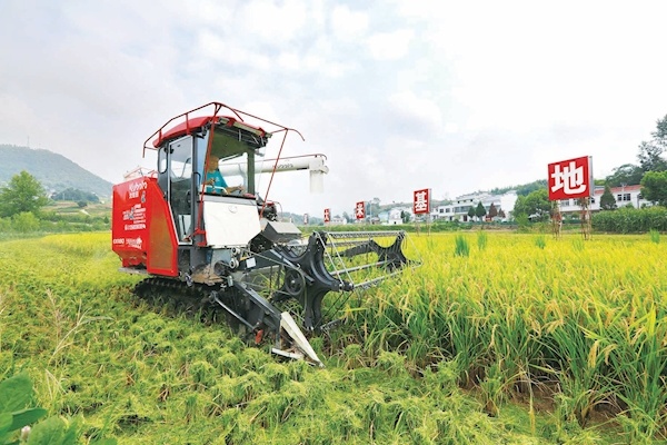 8月24日,竹山县宝丰镇喻家塔村水稻种植基地里,沉甸甸的稻穗随风摇曳,翻起层层稻浪。伴随着阵阵轰鸣声,收割机在稻田中来回穿梭,收割、脱粒、秸秆粉碎等程序一气呵成。眼下已进入水稻收割的季节,该镇农业技术推广服务中心组织多台收割机,在全镇5000余亩稻田里开展机收作业,做到“成熟一块、收割一块”,提高生产效率,降低生产成本,实现农业增效、农民增收。特约记者朱本双通讯员向青云张进摄