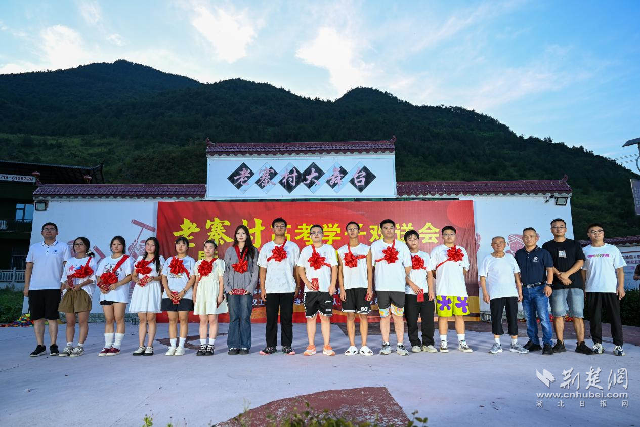 荆楚网(湖北日报网)讯(通讯员 徐意祥)开学季来临。近日,来凤县绿水镇老寨村2024年大学新生欢送会暨“暑期学堂”结业晚会在该村大舞台举行,现场为村里今年考取大学的19名大学新生和2名研究生戴上大红花,并发放奖学金。300多名村民代表共同见证并送上祝福,勉励学子们继续勤奋学习,希望他们学成后为家乡建始和社会发展添砖加瓦。