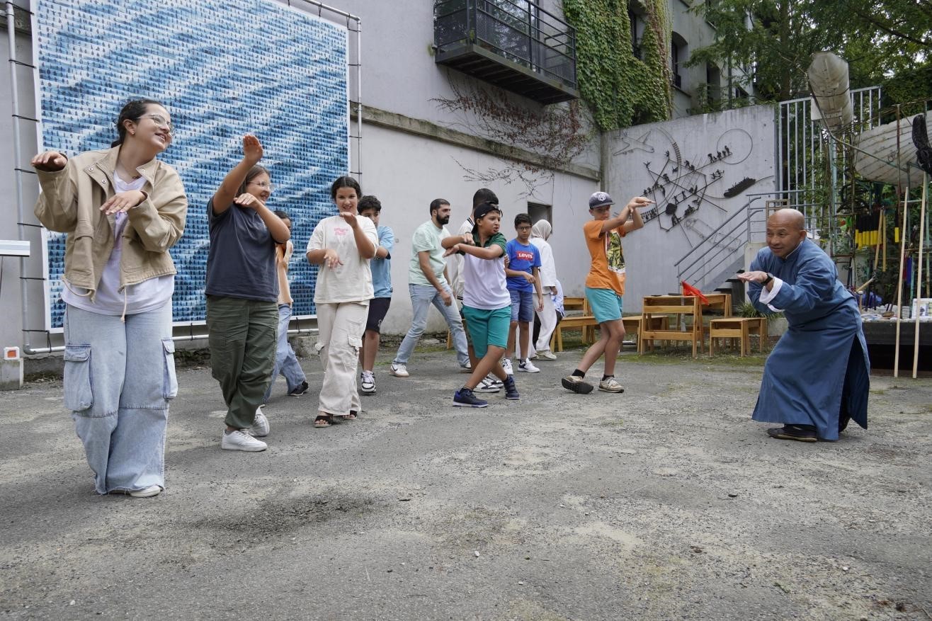 孩子们与鲁汶大学武术老师、北少林长拳传人罗师傅学习中国功夫。比利时维他命文化传媒供图