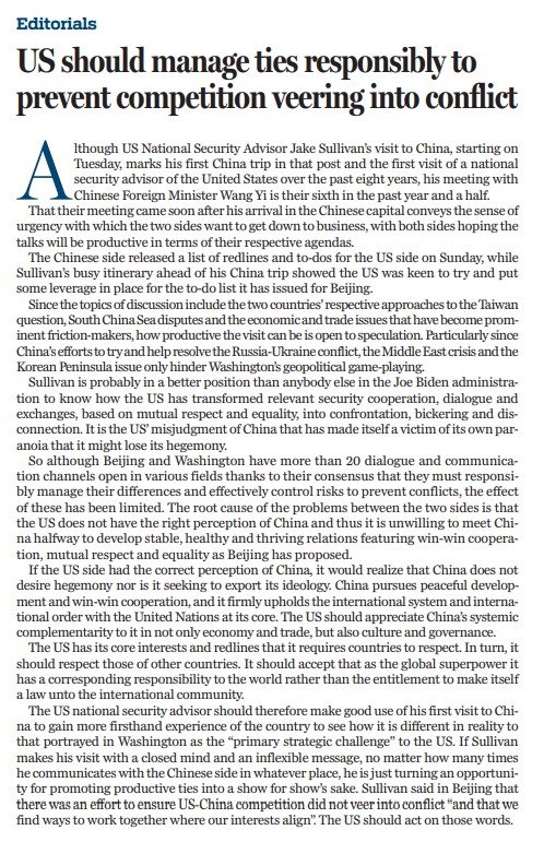 原文标题:US should manage ties responsibly to prevent competition veering into conflict
