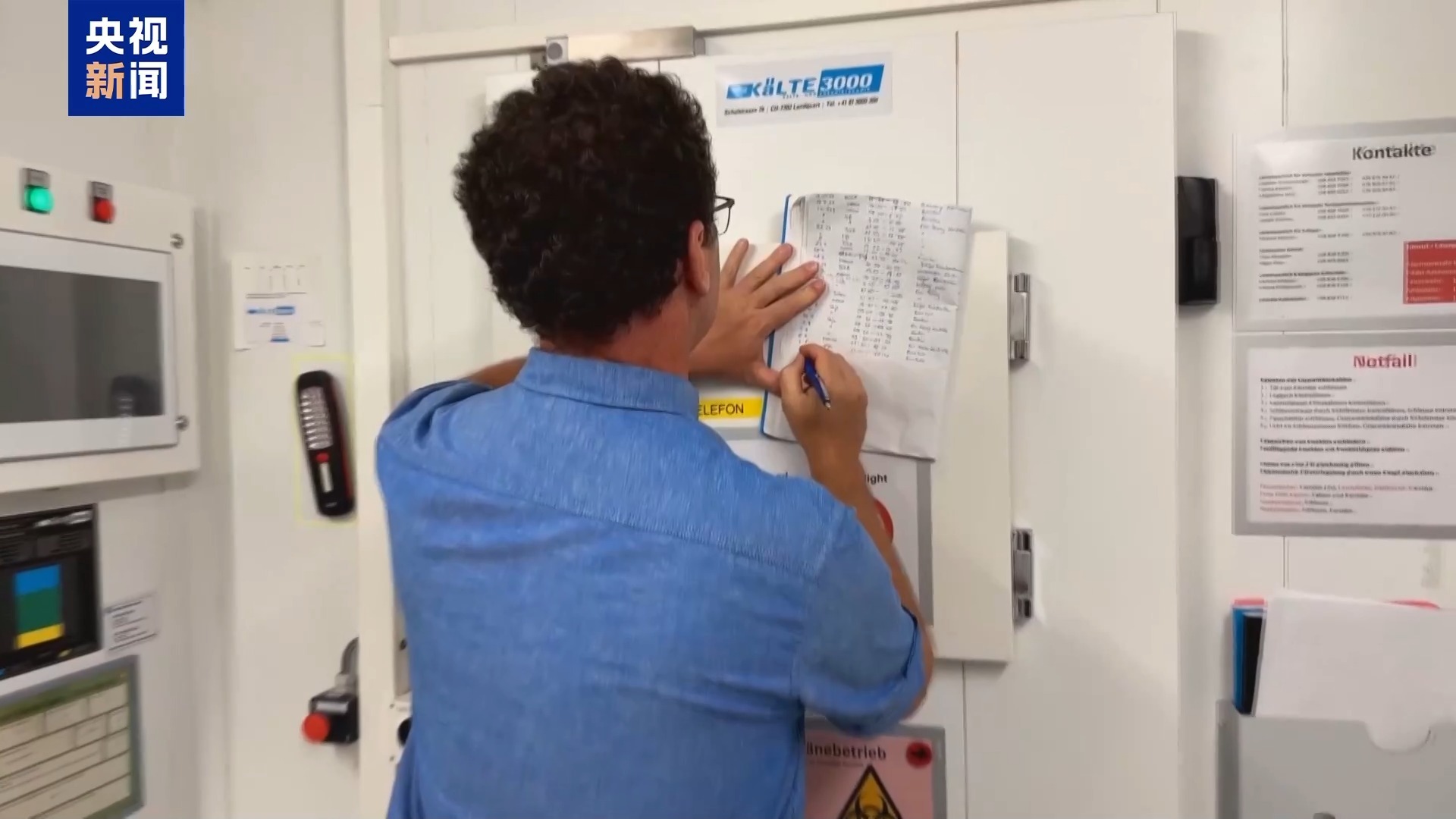 总台记者 杨春:经过了三重关闭得非常紧的大门,我们进入了这个生物实验室。我跟博士一起穿上了有这样一个标志的衣服,大家如果能够看清的话,衣服上有一个大甲虫标志,下面是他们这个生物防治项目的名字。