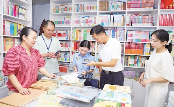 8月29日,执法人员在张湾区开展校园周边出版物市场专项检查。开学在即,市“扫黄打非”办公室组织教育、市场监管等部门联合开展“开学季”校园周边出版物市场专项整治行动,重点检查学校附近的书店、文具店、打印店是否依规办理营业执照、出版物经营许可证等证照,是否存在售卖不适宜青少年阅读的出版物以及妨害未成年人健康成长的物品,清查各类侵权盗版及非法出版物,同时检查经营场所消防安全,消除潜在风险隐患。各县(市、区)同步开展专项整治行动。记者潘世新摄