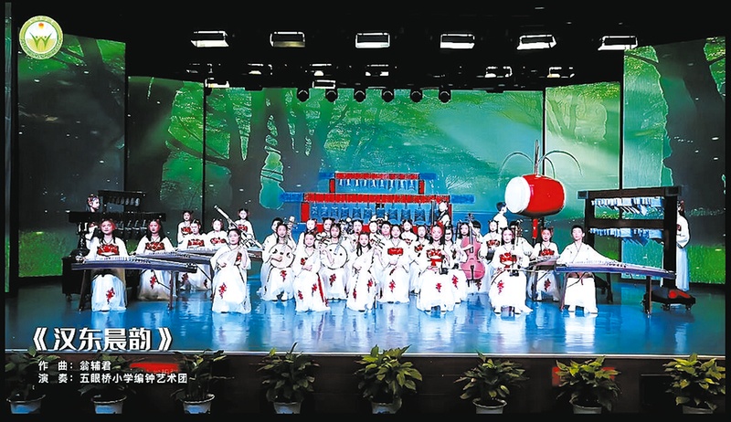近日,曾都区五眼桥小学器乐表演《汉东晨韵》在2024年“多彩少年宫放飞少年梦”全省乡村学校少年宫项目建设成果展示活动中荣获一等奖,这是《汉东晨韵》继荣获随州市编钟美育节一等奖、湖北省黄鹤美育节一等奖、随州市第二届“非遗”展演银奖后,又捧回的一项大奖。