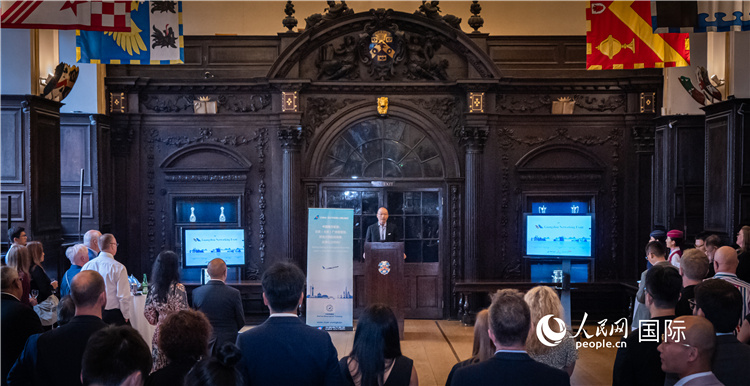 图为中国南方航空伦敦营业部总经理陈珂致辞。人民网 郭锦标摄