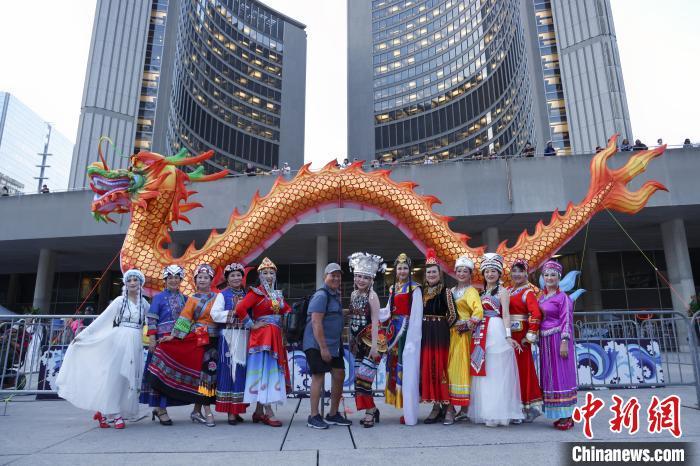 当地时间8月30日,加拿大多伦多,在市政厅前广场揭幕的第五届多伦多龙文化节吸引大批各族裔民众。由加拿大华人文化艺术团体联合会主办的本届龙文化节将持续至9月1日,面向公众免费开放。中新社记者 余瑞冬 摄