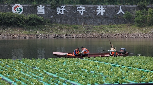 我们看到,茅塔河水库漂起一垅垅生态浮床,碧绿青翠的水芹菜、生菜,在水上伸展出鲜嫩的枝叶。茅箭区南水北调服务中心主任唐政说,该中心借鉴千岛湖治理经验,采取生物法修复水库立体生态系统,这种水生蔬菜发达的根系可吸收水中的磷、氮,抑制藻类生长。目前,茅塔河水质由Ⅲ类提升为Ⅱ类。