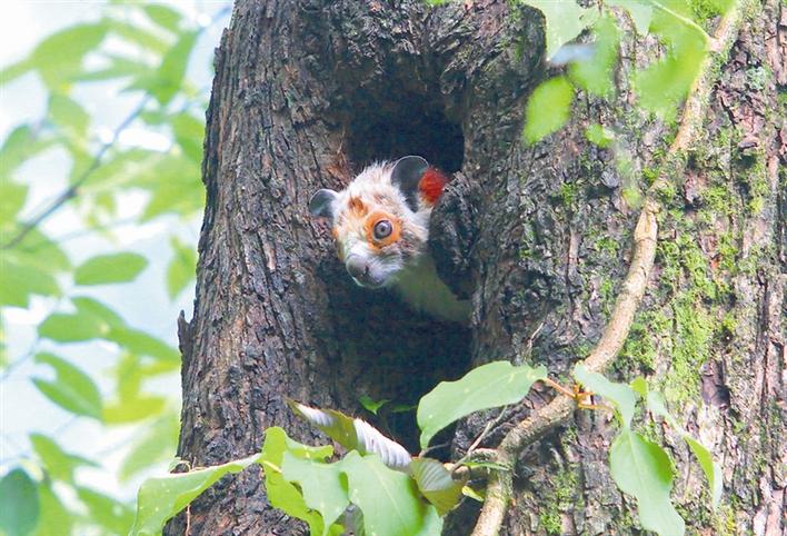 黄大钱带领科考队进山考察,科考队拍下红白鼯鼠的照片。 李传平 摄