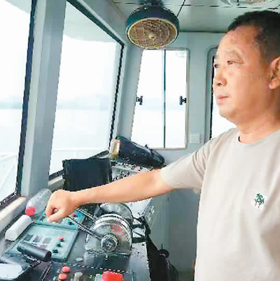太阳越来越高,就像一个高高挂起的火盆,将船晒得发烫。炙热的空气充满了整个驾驶室,并拼命地往身体的每一个毛孔里钻,然后不断挤出一滴滴汗珠来。“这种天气,早上9点之后甲板的温度就会快速上升,中午甲板最高温度可达60多摄氏度。”老杨说着,顺手打开了驾驶舱的所有玻璃窗。