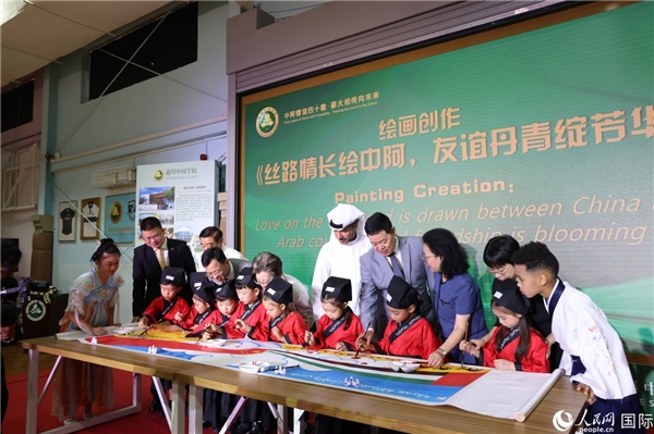 嘉宾及师生代表共同进行绘画创作。人民网记者任皓宇摄